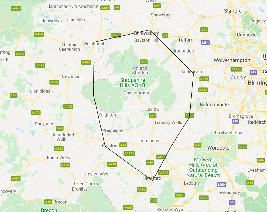 We currently cover South Shropshire, North Herefordshire and surrounding areas. Please take a look at the map for an idea on where we currently travel. The map is just a guide and if you are unsure if we travel to your area please get in contact to find out.